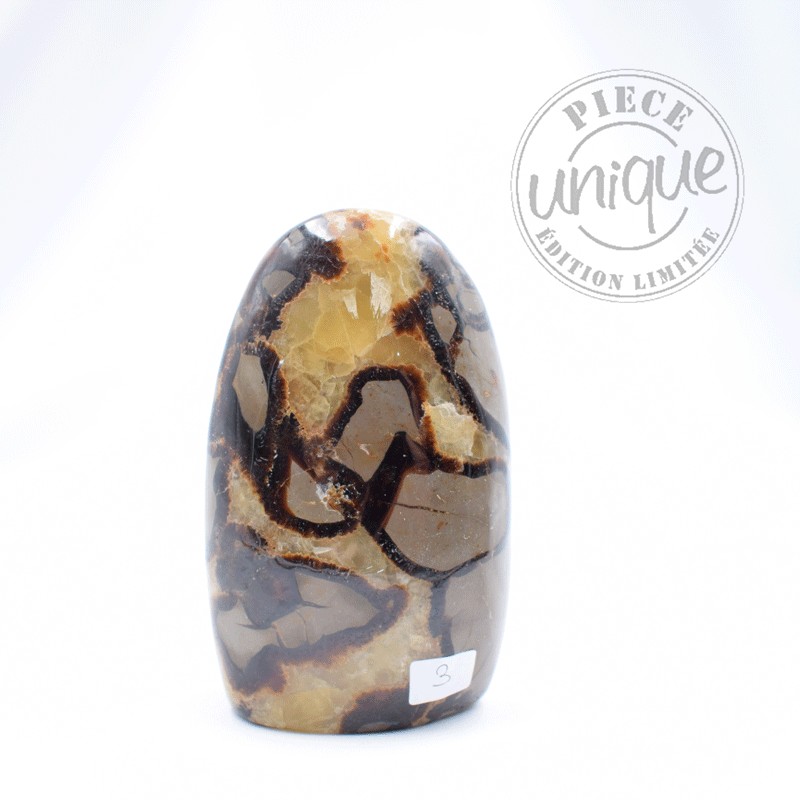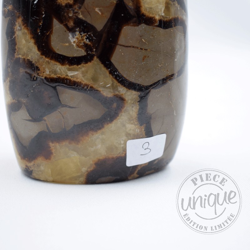 Bonita Septaria de Madagascar tallada a mano en forma libre.