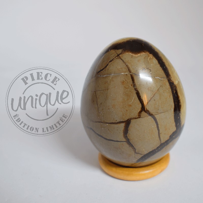 Bello huevo en Septaria de Madagascar. Se envía junto con su soporte, un aro de bambú.