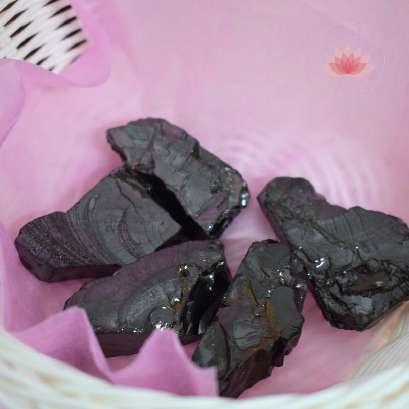 La shungit tiene un profundo efecto de anclaje, de arraigo; permite reconectar nuestra energía con la Tierra. Hace un trabajo de alineamiento energético de nuestros cuerpos energéticos y nos permite recentrarnos, estar en el tiempo presente y recomenzar a actuar con armonía.