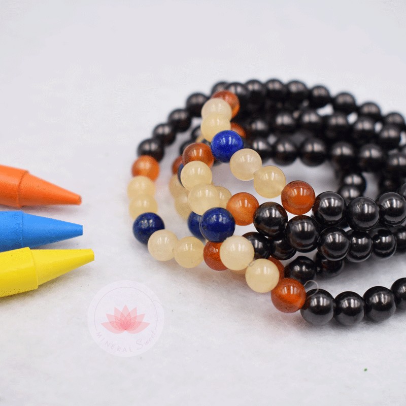 Pulsera niño en Shungit, Calcita amarilla, Cornalina y Lapislázuli