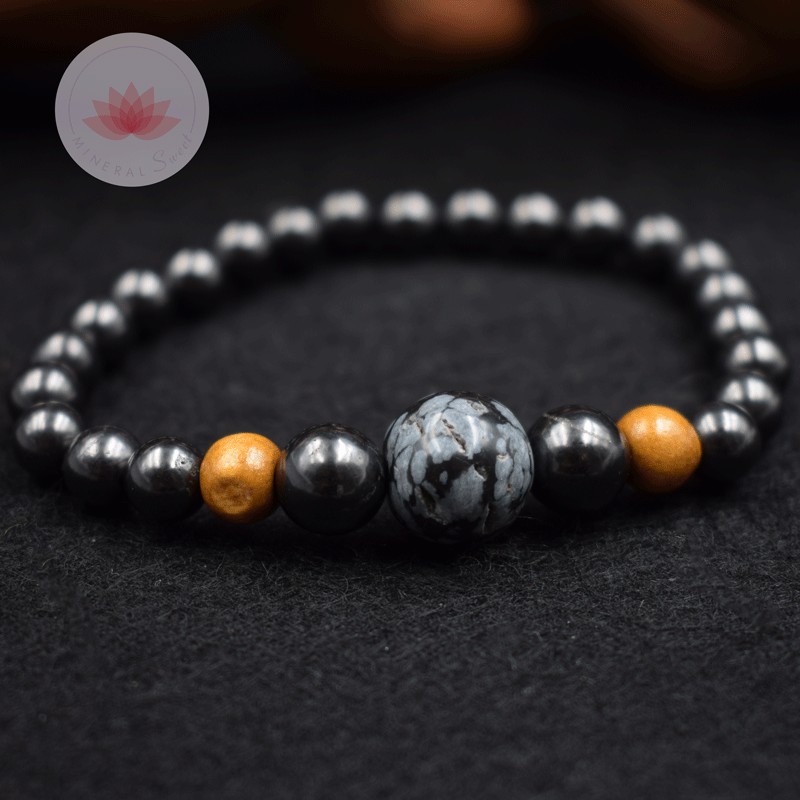 Pulsera Hombre Shungit, Obsidiana nieve y madera