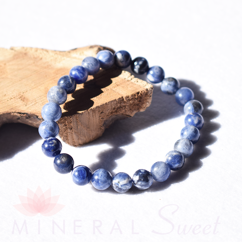Bonita pulsera de Sodalita, perlas redondas de 8mm
