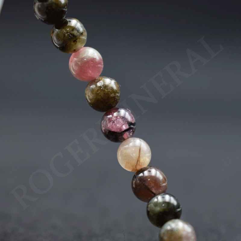 Bonita pulsera en Turmalina multicolor, perlas redondas de 5mm