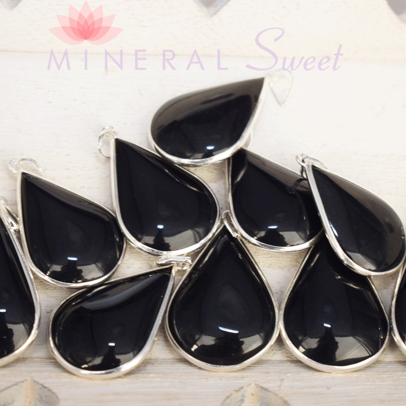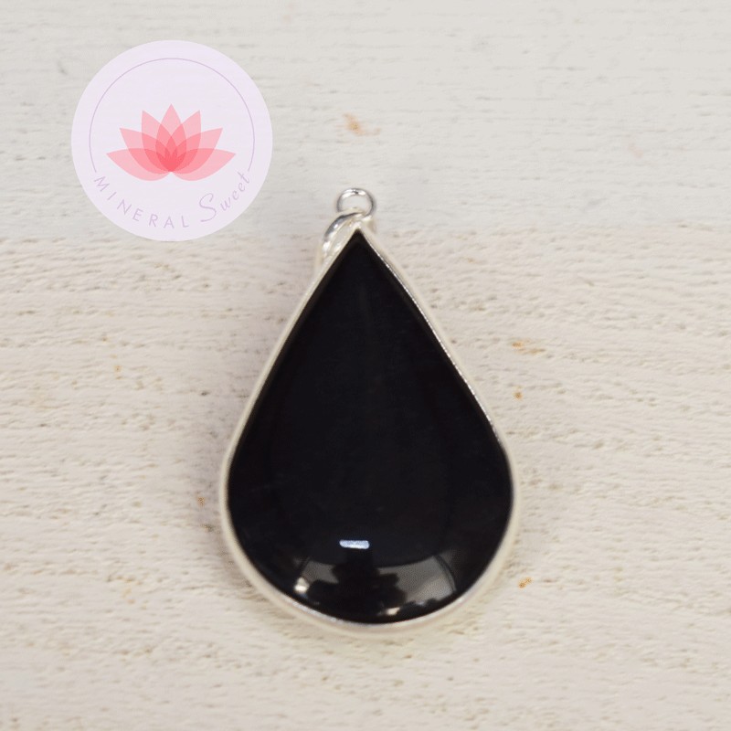 Colgante gota Turmalina negra y plata