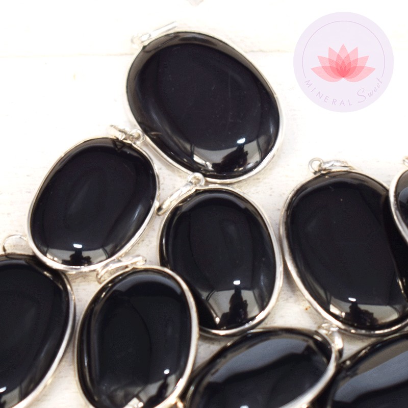 Colgante oval Turmalina negra plata