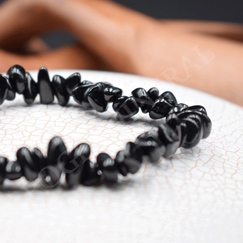 Bonita pulsera de Turmalina negra en perlas barrocas.