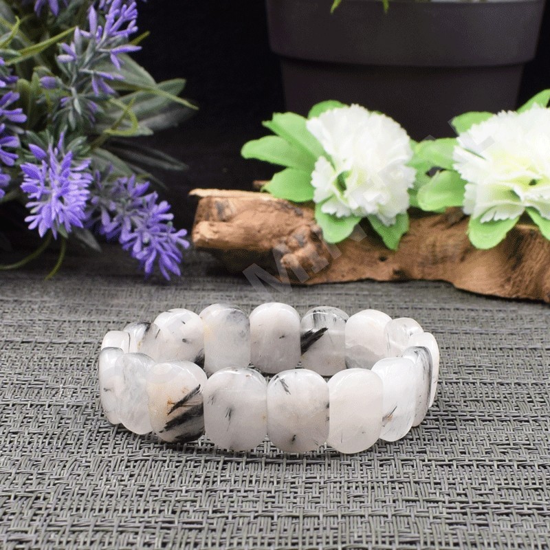 Elegante pulsera en Cuarzo con inclusiones de Turmalina negra.