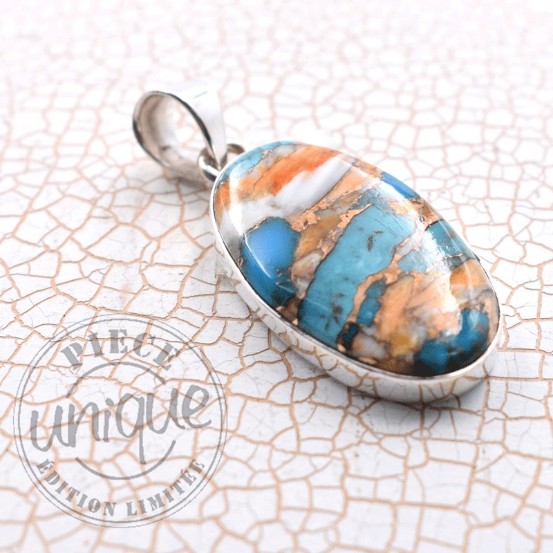 Colgante en Turquesa cobre de Arizona engarzado en plata.