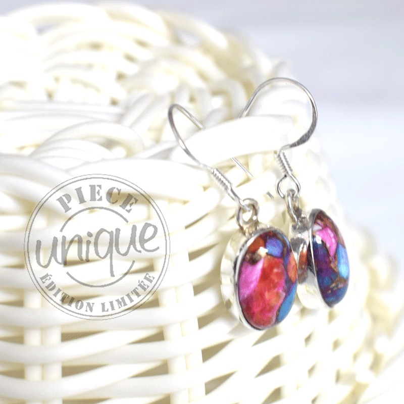 Pendientes de plata con una piedra de Turquesa cobre.