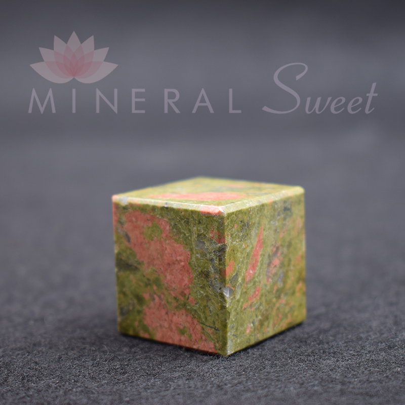 La unakita existe con muchos matices de verde y de rosa, con cristales de apariencia irregular.