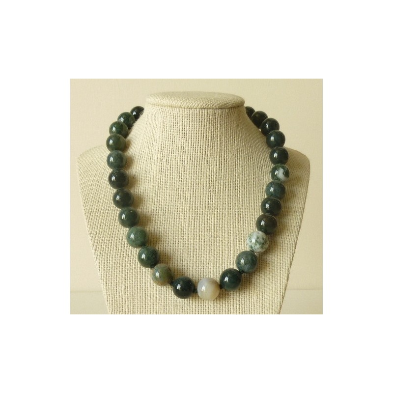 Très beau collier Agate mousse aux perles rondes de diamètre 14mm.