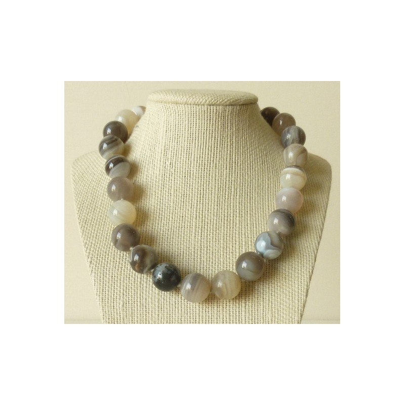 Collier Agate Perles rondes 16mm