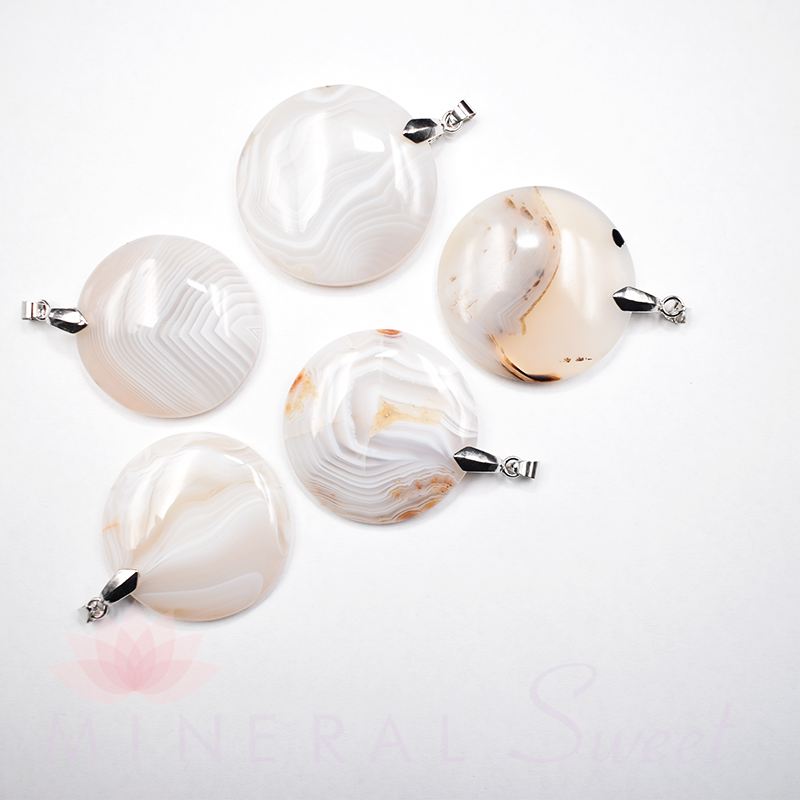 Attention toute fois à bien faire la différence entre les Agate aux couleurs vives (bleues, roses, violet, vert flash..etc) teintées artificiellement et les agates naturelles aux tons plus doux, marron, gris, beige, orange clair.