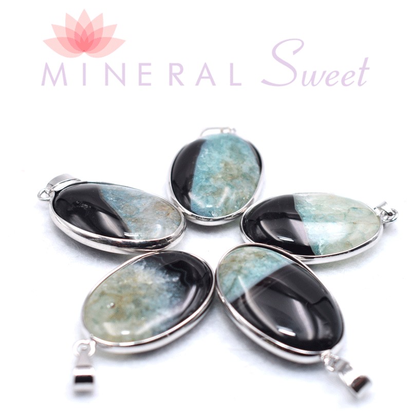 Pendentif en Agate teintée serti metal blanc.