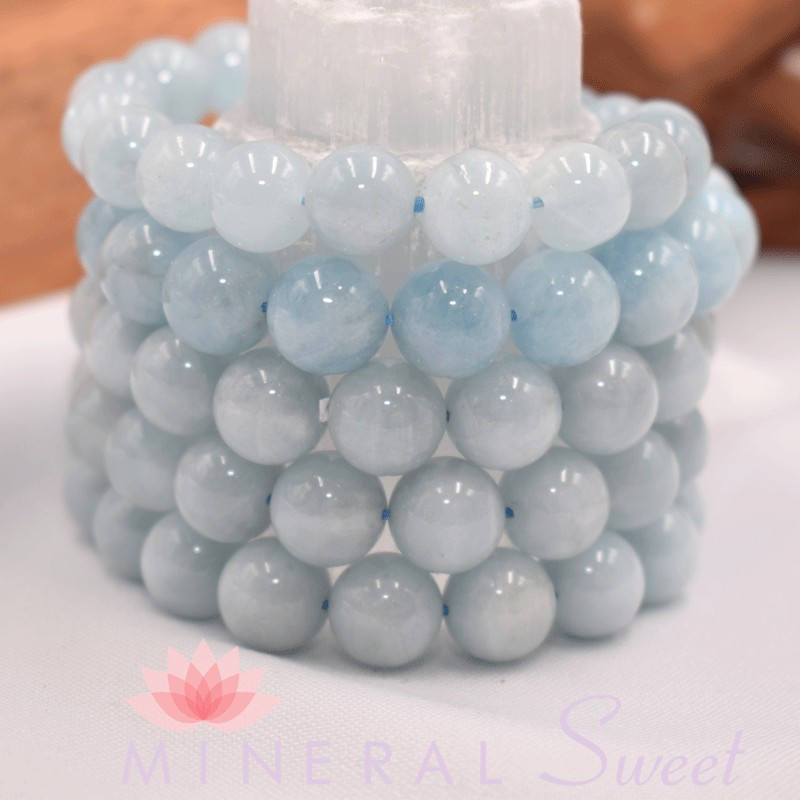 Bracelet Aigue-Marine Perles rondes 12mm