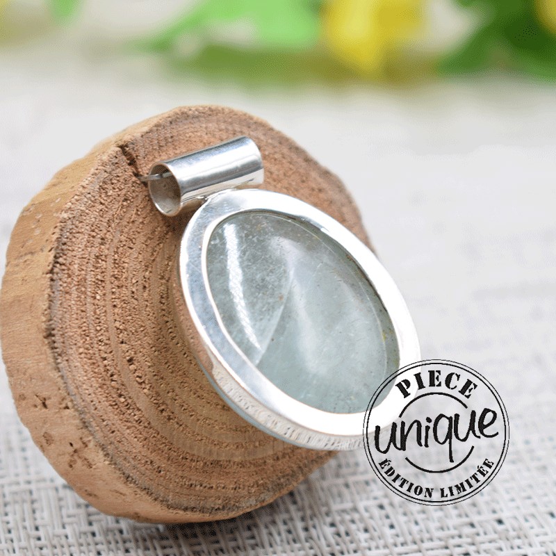Pendentif Aigue Marine verte et argent 4