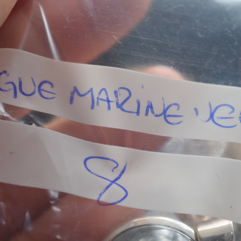 L'aigue-marine (du latin aqua marina, « eau de mer ») est un minéral du groupe des silicates, sous-groupe des cyclosilicates. C'est une variété de béryl,(Be) transparente, de couleur bleu clair évoquant l'eau de mer. sa composition chimique est: Be3Al2Si6O18, il y a donc présence de Béryllium, Aluminium, Silicium...