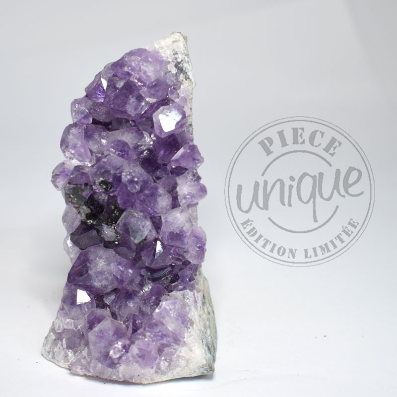 L'Améthyste a été utilisée en tant que pierre d’ornement, elle a été exploitée tout au début à des fins décoratives par les étrusques et par les égyptiens. Elle est toujours considérée comme une pierre précieuse, et traditionnellement était considérée comme une pierre de piété, de célibat, d'ailleurs utilisée par le clergé... pierre sacrée dans des religions diverses.