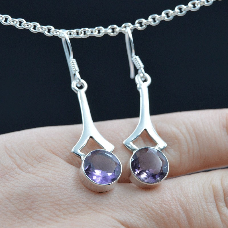 Ces boucles d'oreilles en Améthyste sont fines et très coquettes.