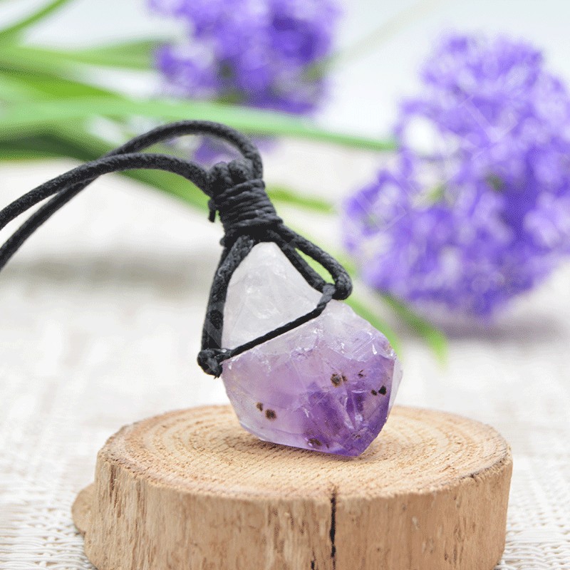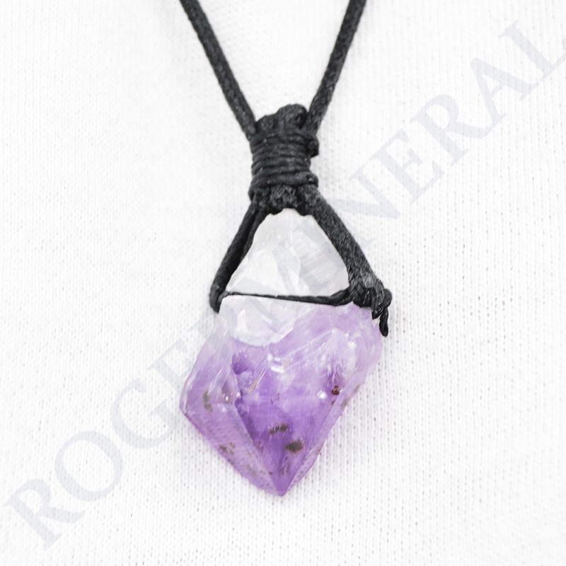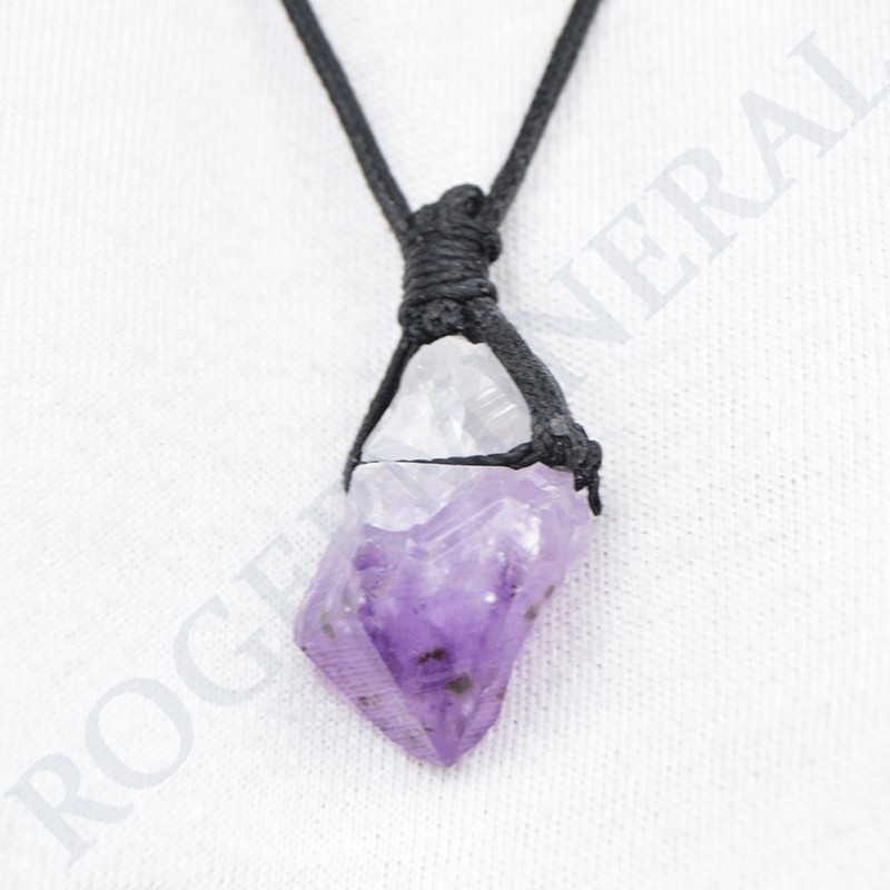 Pendentif Améthyste brute avec cordon noir.