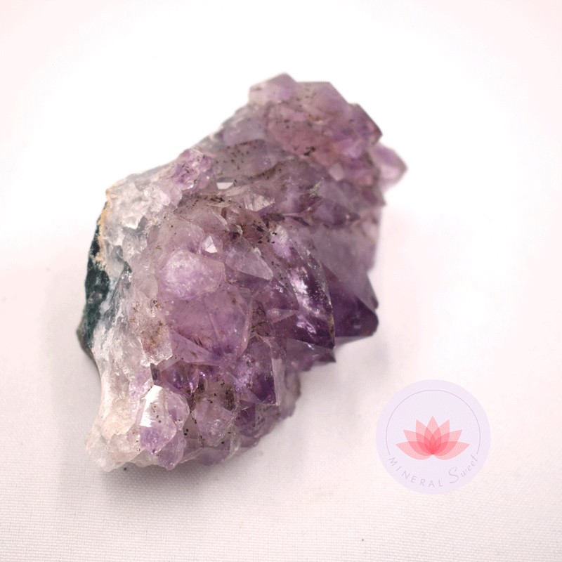 La composition chimique de l’améthyste est celle du quartz, le dioxyde de Silicium, (SiO2), sa couleur provient des éléments de manganèse, de fer qui se sont ajoutés durant certaines modifications naturelles de la pierre .