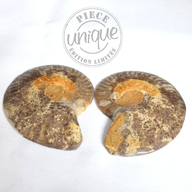 Couple Ammonites polies d'un coté