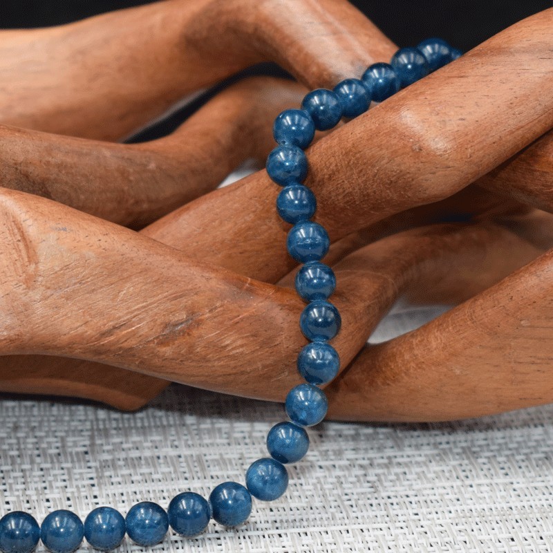 Nous vous proposons des perles rondes d'Apatite naturelles à l'unité, diamètre 8mm.