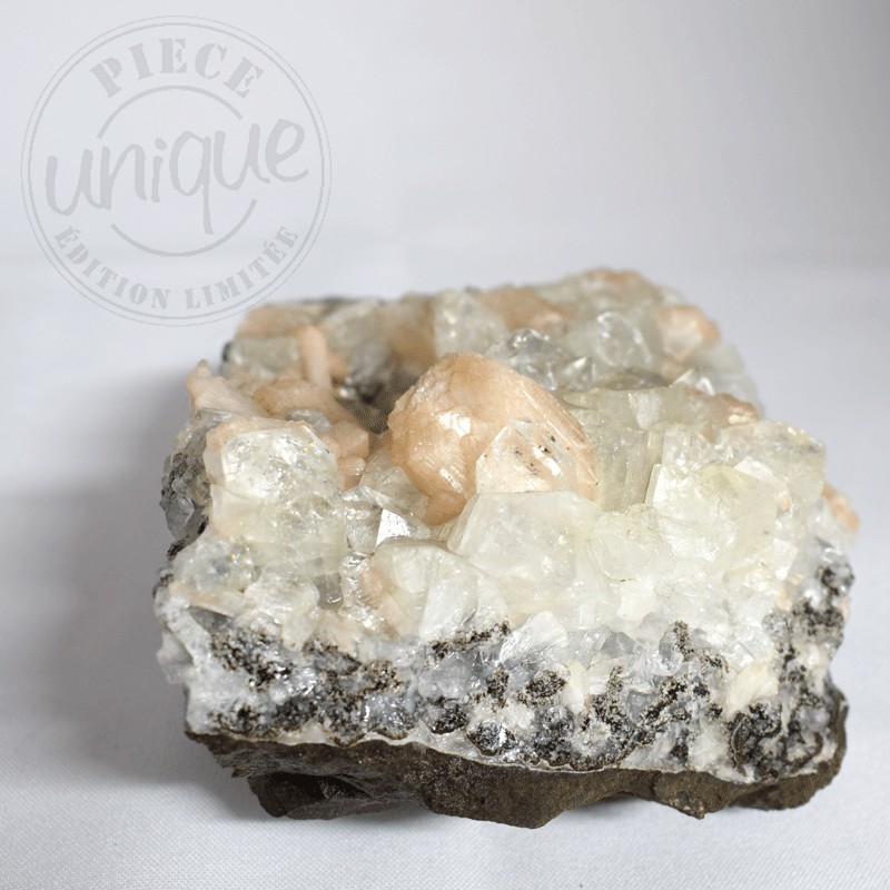Bel amas d'Apophyllite avec Stilbite, pierre naturelle.