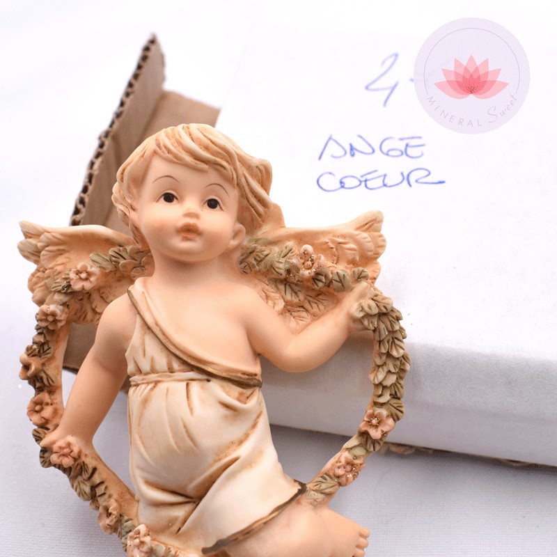 Beaux anges en résine entourées d'un coeur.
