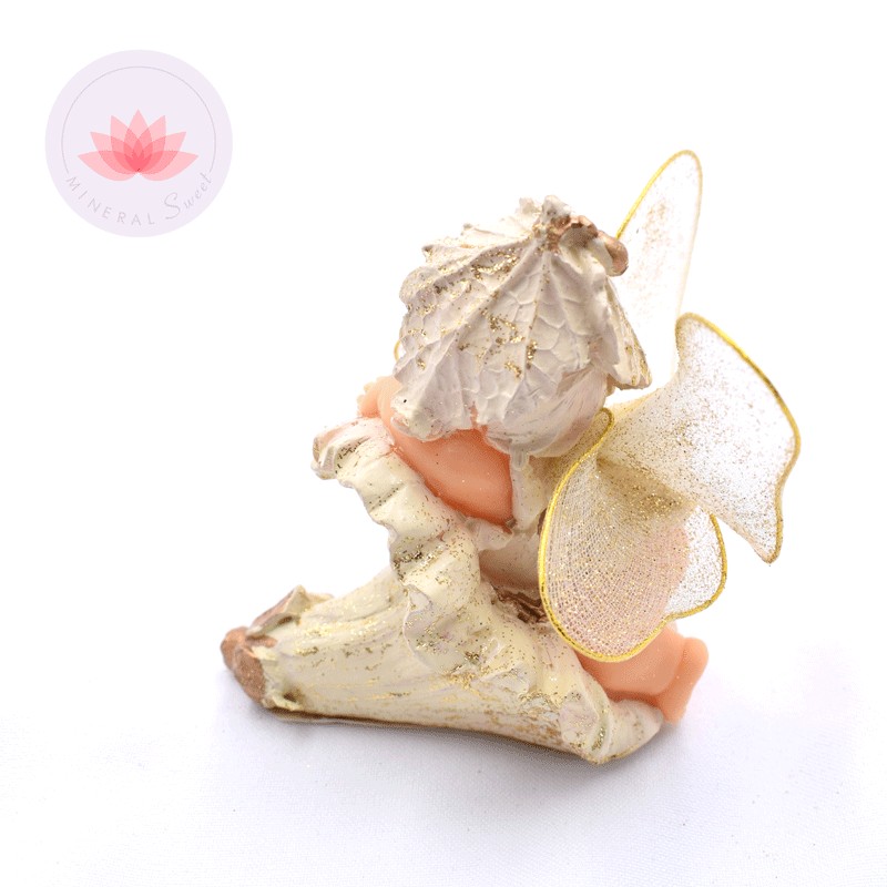 Beau ange bébe dorment sur une fleur. Ange en résine, avec des détails et des ailes dorés.