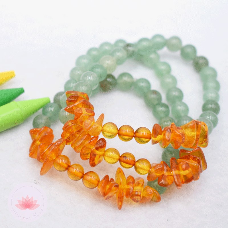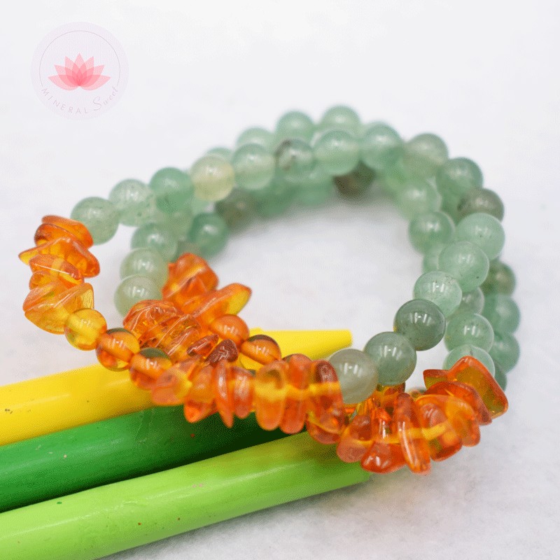 Ce bracelet est composé de 2 pierres : l’aventurine, l’ambre.