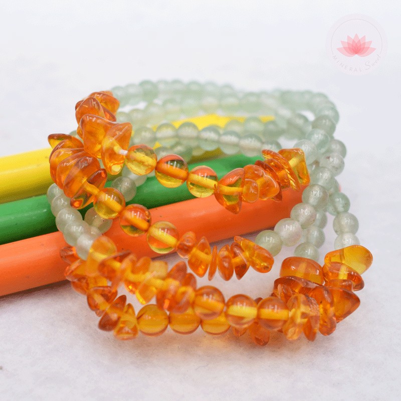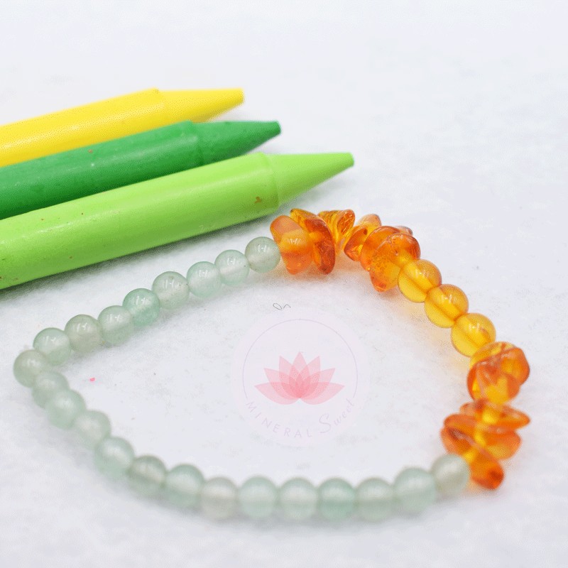 Ce bracelet est composé de 2 pierres : l’aventurine, l’ambre.
