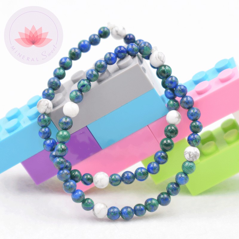 Ce bracelet est composé de 2 pierres : la howlite et l'azurite.