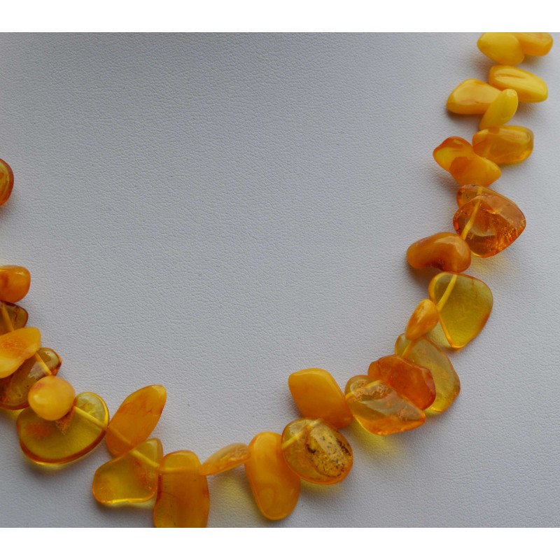 Collier Ambre dont la couleur crème est parfaitement naturelle, c'est le plus bel ambre, très prisé, perles pétales.