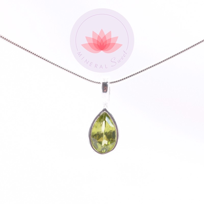 Petit pendentif Peridot serti argent de 925 avec sa chaîne serpent de 40cm