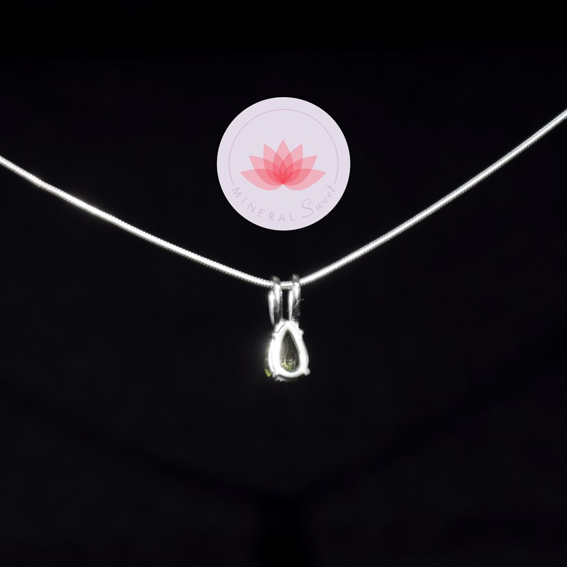 Petit pendentif Peridot serti argent de 925 avec sa chaîne serpent de 42cm