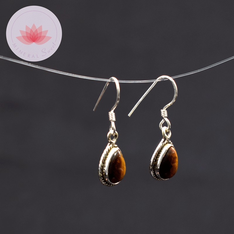L'Œil de Tigre est un minéral de la famille des quartzites, un dioxyde de silicium, de composition chimique: SiO2. Il est dit de cette pierre qu'elle est fibreuse, d'où son aspect chatoyant.