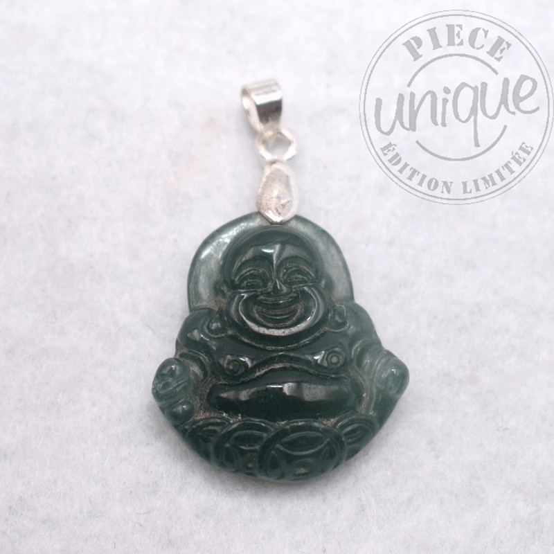 Très beau Bouddha en Jade du Canada avec belière en métal blanc.