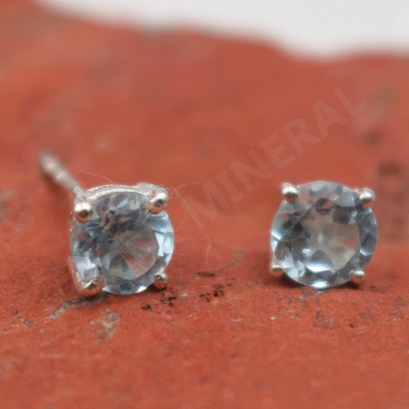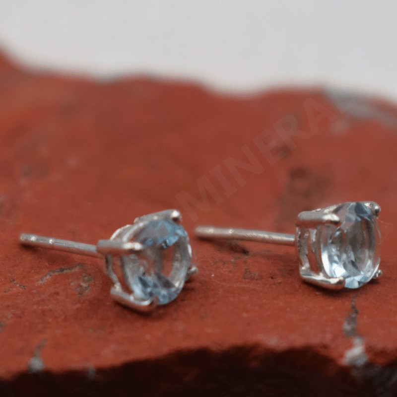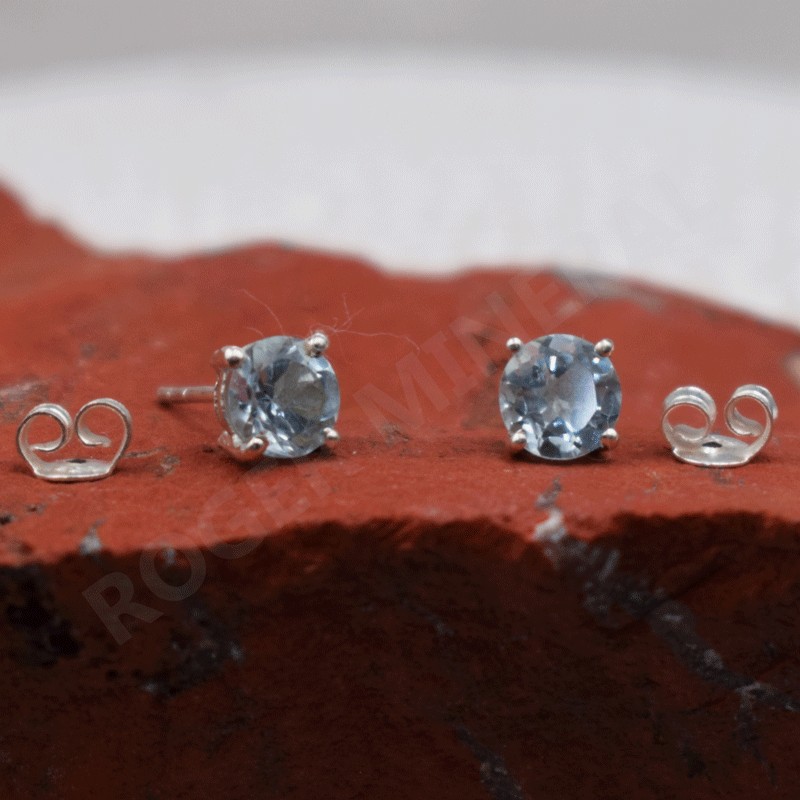 Boucle d'oreille en Aigue-marine facettée et argent.