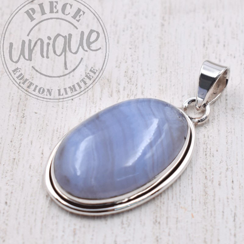 Pendentif en Calcédoine de très belle qualité serti argent de 925.