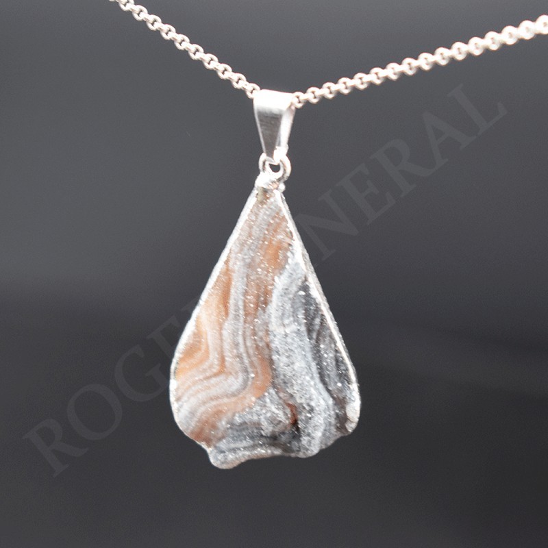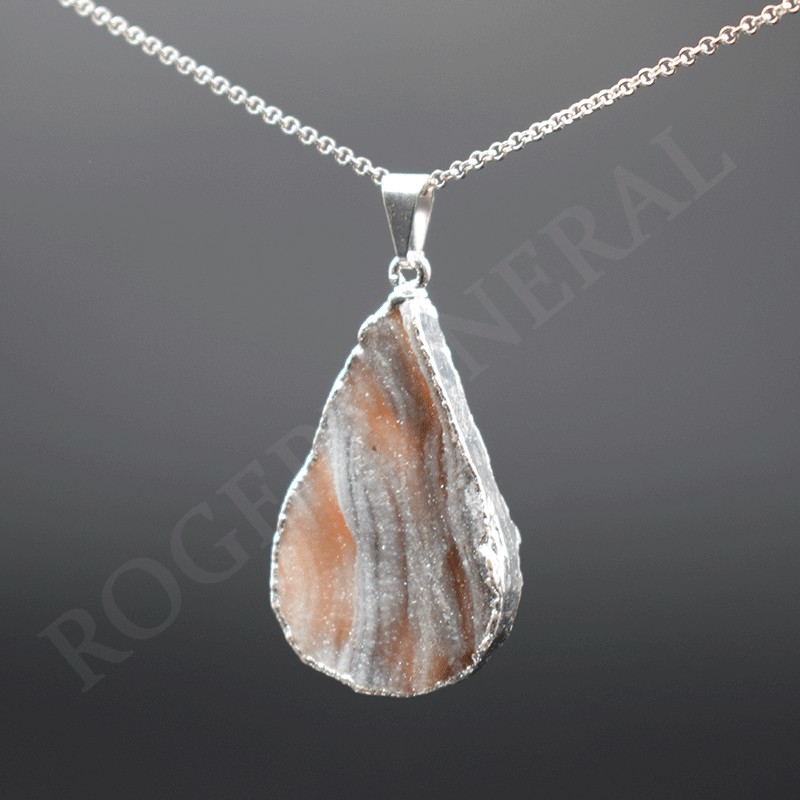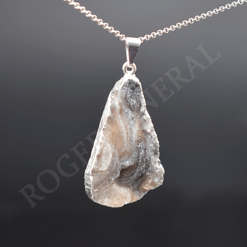 Joli Pendentif fleur de Calcédoine serti en métal blanc.