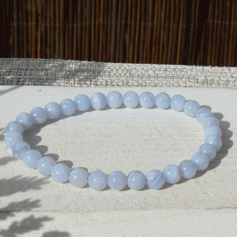 Très beau bracelet de Calcédoine bleue en perles rondes de 6mm.