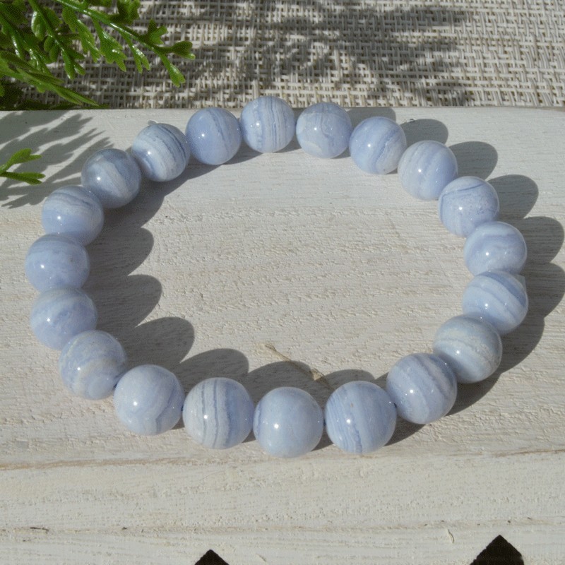 Très beau bracelet de Calcédoine bleue en perles rondes de 10mm.