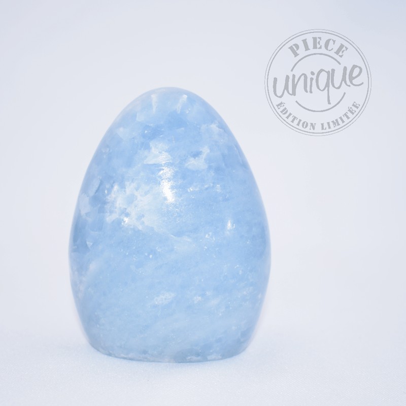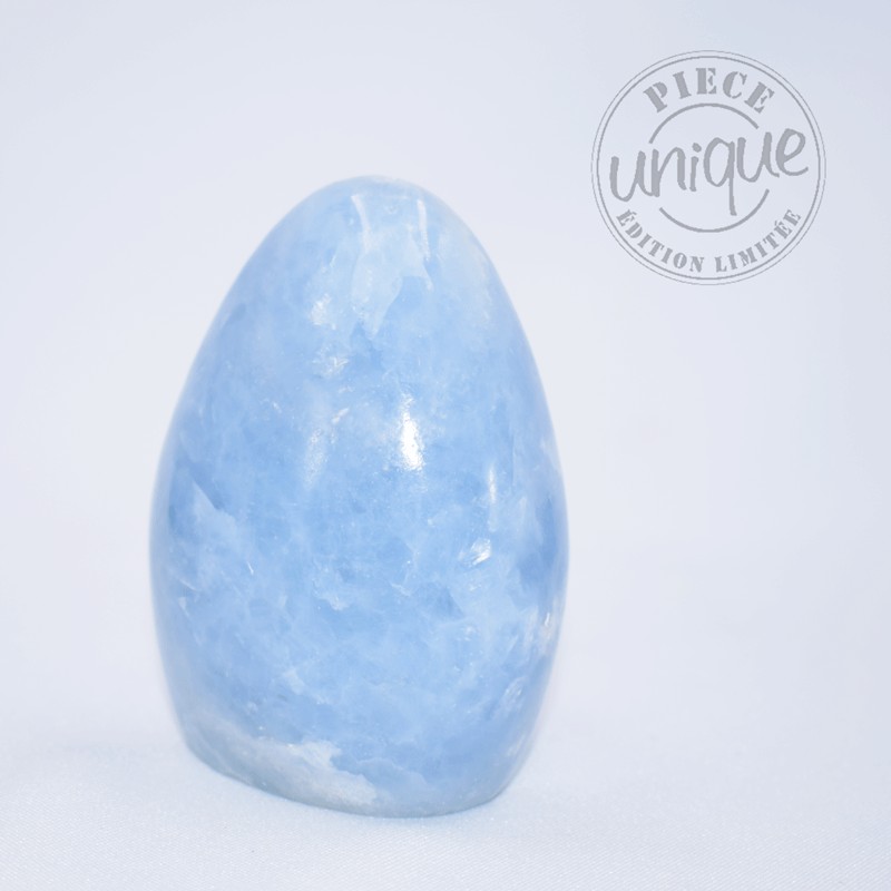 La Calcite bleue est un Carbonate de Calcium Ca2CO3. Le carbonate de calcium est le composé majeur des calcaires comme la craie, par exemple, mais aussi le marbre. C'est aussi le constituant principal des coquilles d'animaux marins, du corail et des escargots. la calcite peut être de différentes couleurs: jaune, orange, bleue, verte, optique, etc... les couleurs sont dues à des impuretés présentes dans le minéral.