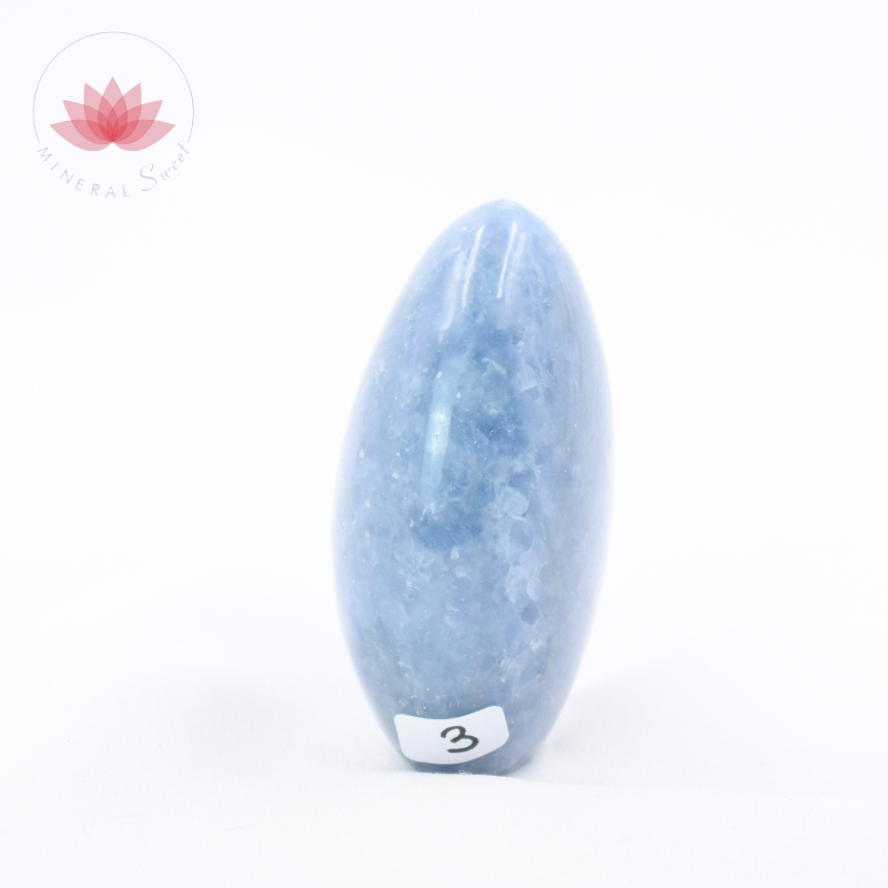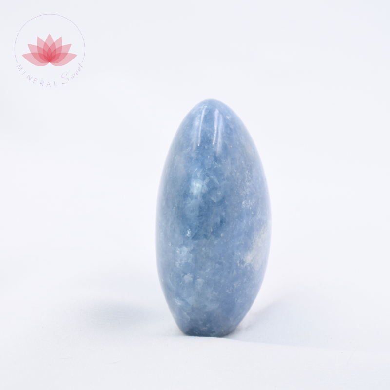 La Calcite bleue est un Carbonate de Calcium Ca2CO3. Le carbonate de calcium est le composé majeur des calcaires comme la craie, par exemple, mais aussi le marbre. C'est aussi le constituant principal des coquilles d'animaux marins, du corail et des escargots. la calcite peut être de différentes couleurs: jaune, orange, bleue, verte, optique, etc... les couleurs sont dues à des impuretés présentes dans le minéral.