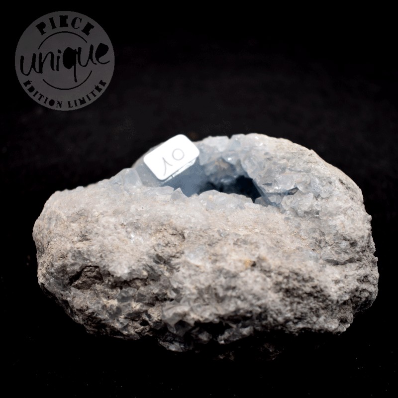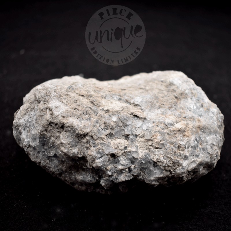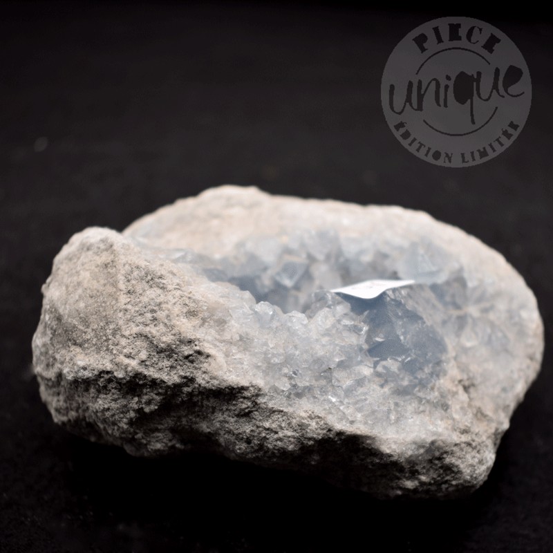 La Célestine est un minéral composé de sulfate naturel de strontium de formule chimique: SrSO4 avec des traces de Ba, Ca. (baryum et calcium).