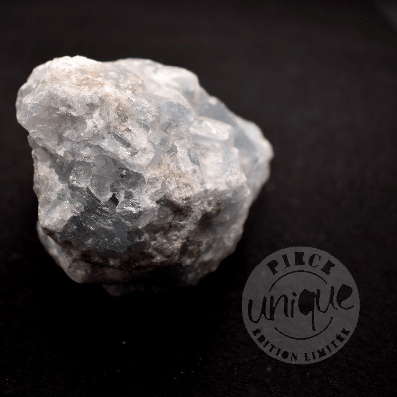 La Célestine est un minéral composé de sulfate naturel de strontium de formule chimique: SrSO4 avec des traces de Ba, Ca. (baryum et calcium).