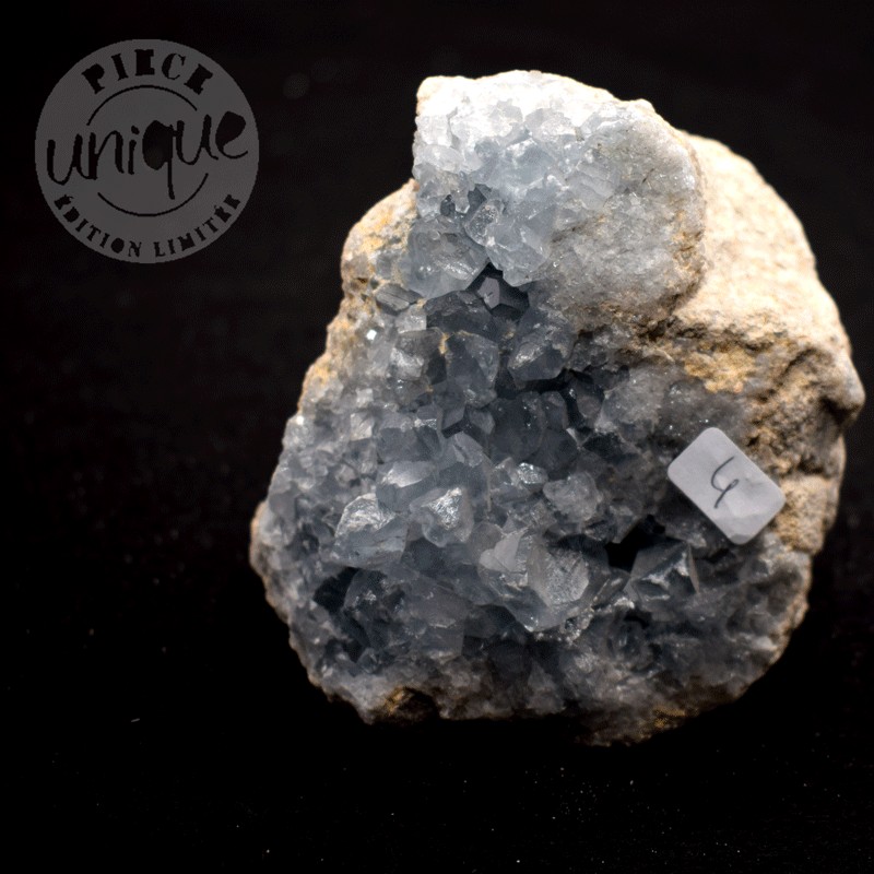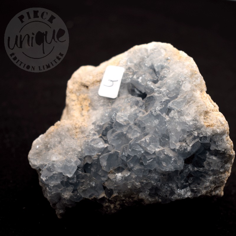 La Célestine est un minéral composé de sulfate naturel de strontium de formule chimique: SrSO4 avec des traces de Ba, Ca. (baryum et calcium).