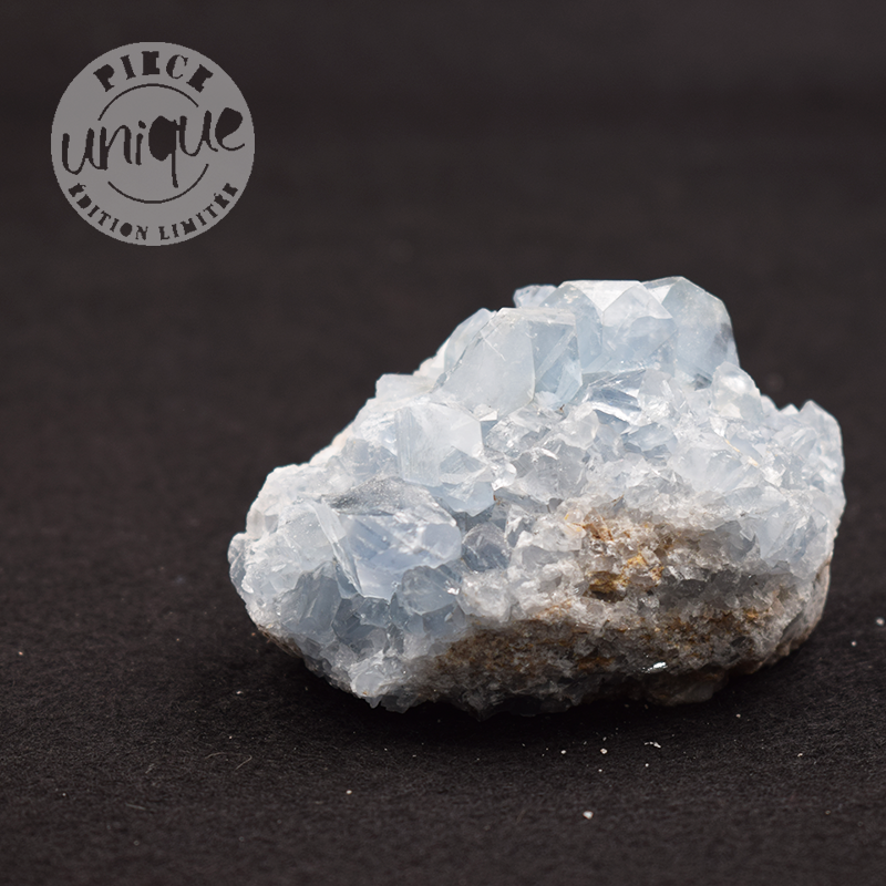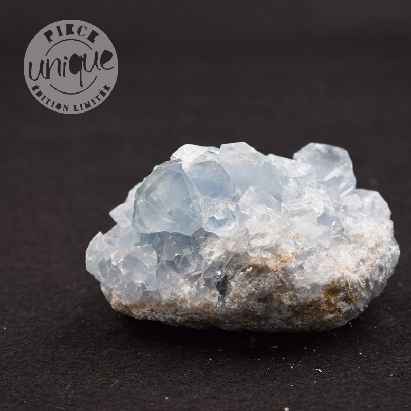 La Célestine est un minéral composé de sulfate naturel de strontium de formule chimique: SrSO4 avec des traces de Ba, Ca. (baryum et calcium).