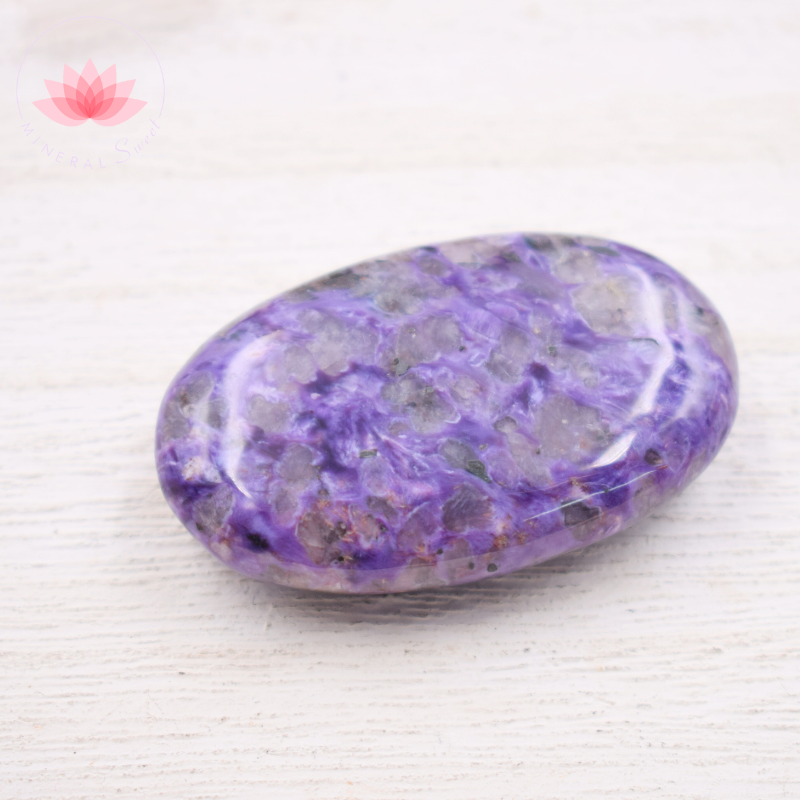 La Charoïte est un minéral du groupe des silicates sous-groupe des inosilicates de formule K5Ca8(Si6O15)2(Si2O7)Si4O9(OH)·3(H2O) avec des traces de d'Aluminium (Al), de Fer (Fe), de Manganèse (Mn), de Strontium (Sr), de Baryum (Ba).